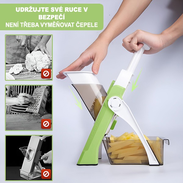 Le lame affilate e precise del nostro dispositivo assicurano tagli perfetti di frutta e verdura senza sforzo.